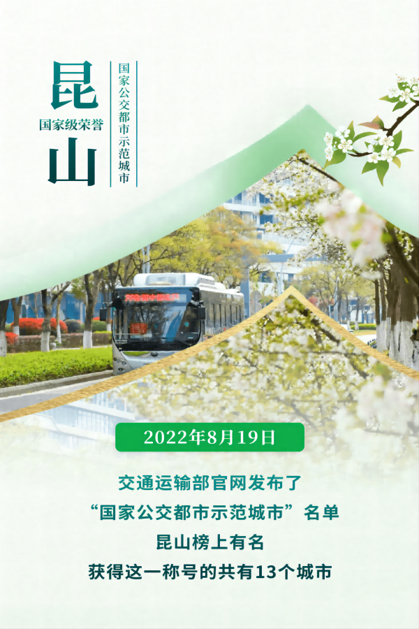 好消息!昆山榮獲“國(guó)家公交都市建設(shè)示范城市”稱(chēng)號(hào)(2022/09/5)